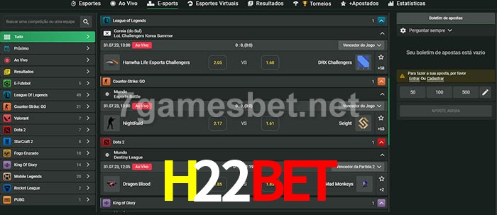 O H22Bet oferece uma grande seleção de opções de apostas em e-sports com probabilidades competitivas